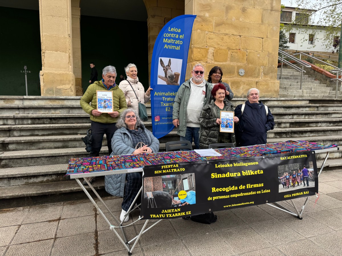 Frente a esa realidad, el Ayuntamiento de Leioa tiene en estos momentos sobre su mesa una petición firmada por más de 3.100 personas residentes en el municipio de Leioa, que consideran que las Asto Probak deben de ser eliminadas del programa de las fiestas del barrio de San Bartolomé, y ser sustituidas por otra actividad que una, divierta y no genere sufrimiento animal.